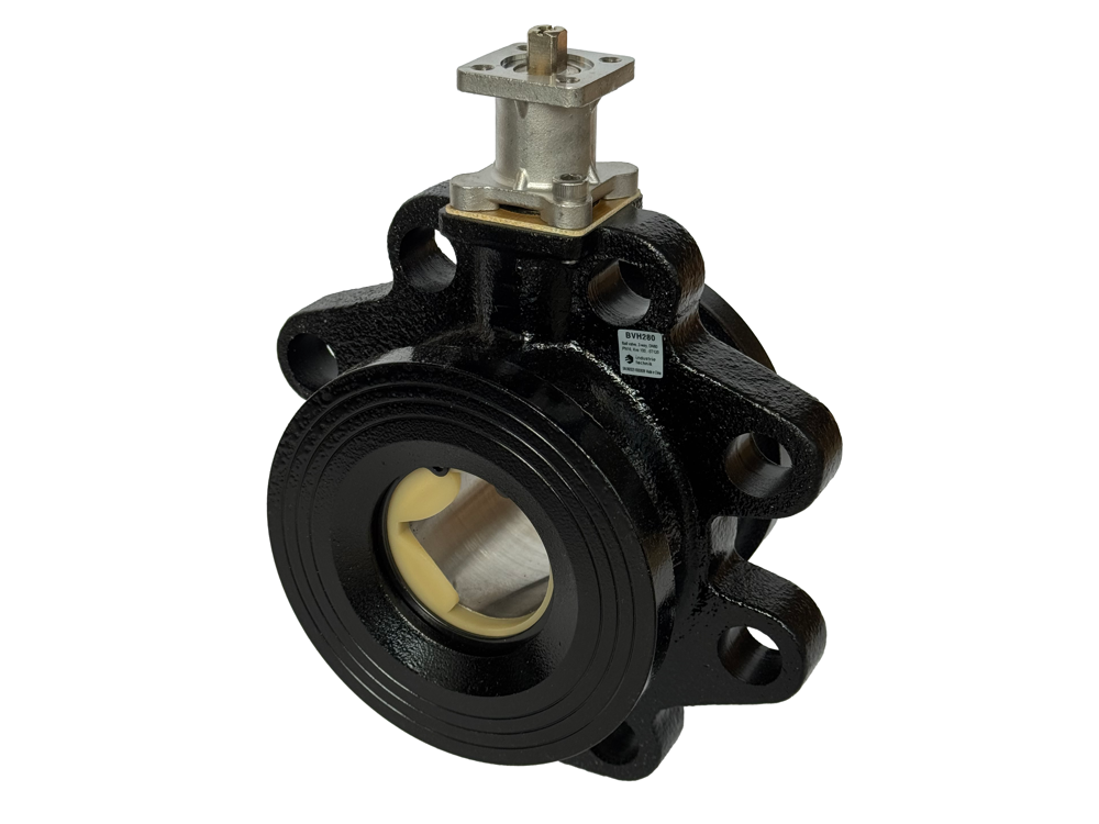 BVH series flanged ball valves designed for control of hot, cold or glycol-mixed water in heating and ventilation systems. The valves are intended for use with Industrietechnik damper actuators through an adaptor bracket.