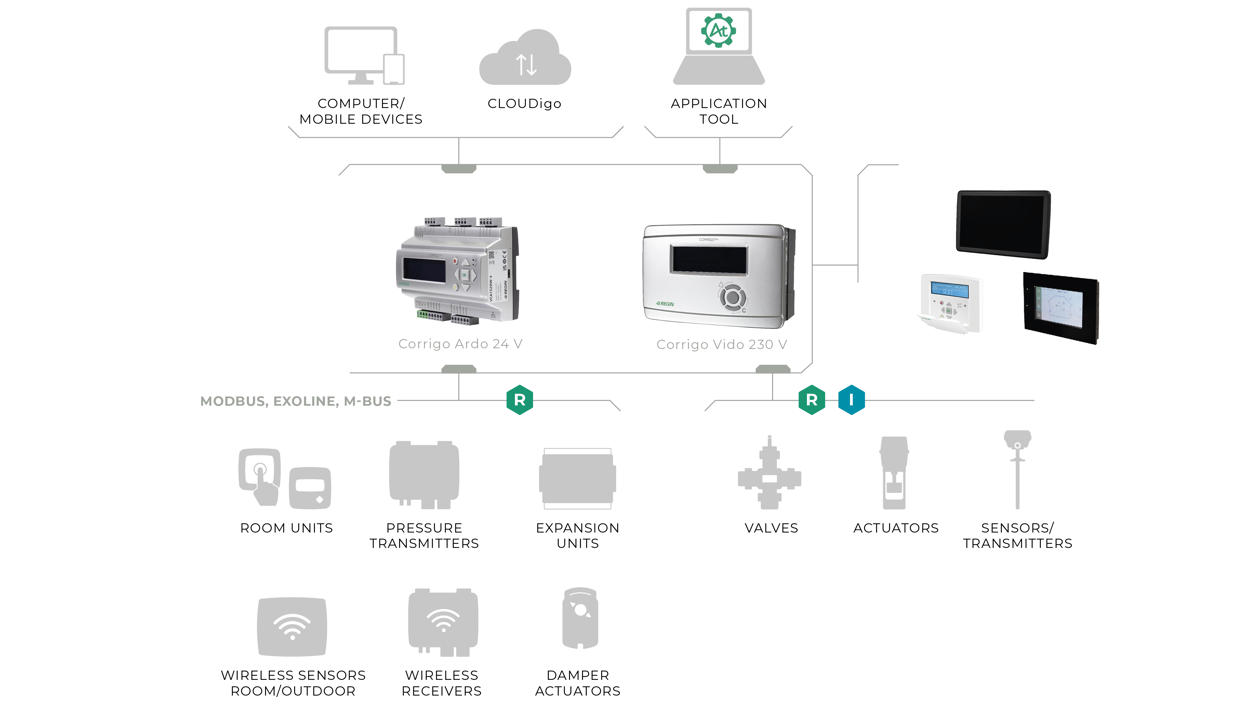 Corrigo Ardo sono controllori per la ventilazione configurabili a 24 V. Sulla pagina prodotto del sito puoi trovare configurazioni predefinite, manuali e accessori.